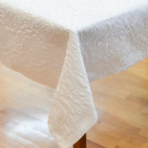 With a light metallic sheen throughout, this tablecloth comes in choice of a 5″ or 8″ solid white embossed border.