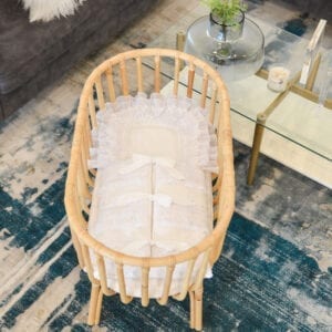 Traditional meets modern with this gorgeous number. With our vintage Claire lace over a gathered ruffle, this design adorns the entire front as well as around the full top portion to create a halo effect. This pooyah is finished with a side zipper for optimal child safety as well as a 3 bow front closure.