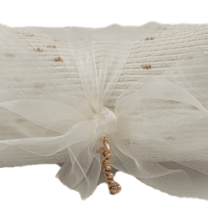 A fine, elegant, design with interwoven gold or silver threading positioned throughout.
