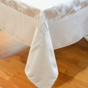 This one has got it all, with its neat and refined floral pattern on a distinctive waffle tone background and a standard waffle tone border on tablecloths over 54″, this is ideal for both dining rooms or kitchens.