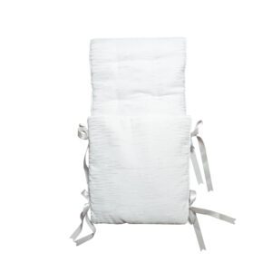 As sleek and modern as it gets, our Zeek Pooyah shines both in design and fabric. With its delicate sheer overlay design and horizanal silver zigzag designs, this item closes with double silver bows on each side for a clean, neat look and is finished with a stylish piping edge. 100% cotton fabric with poly overlay. Colors: White